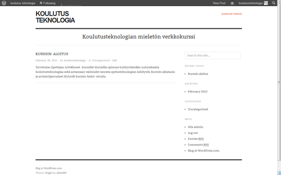 - Verkkokurssin alustana hostattu Wordpress-blogi