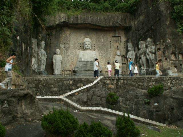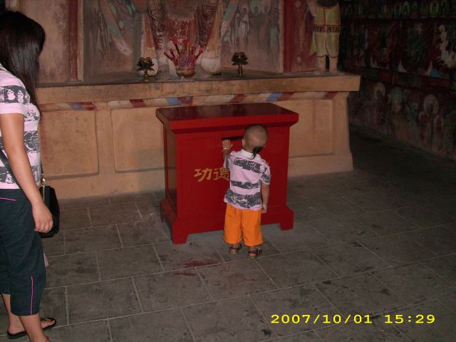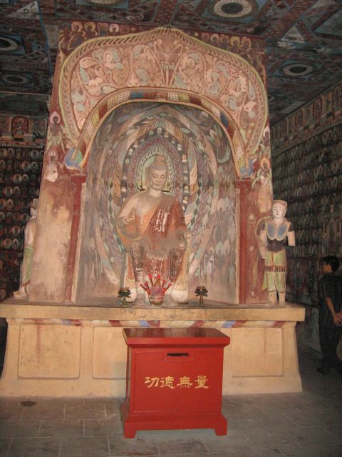 Luolassa oleva Buddha sekä rahan lahjoittajan kampaus.