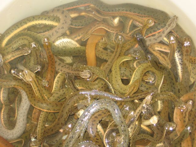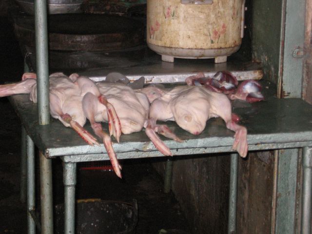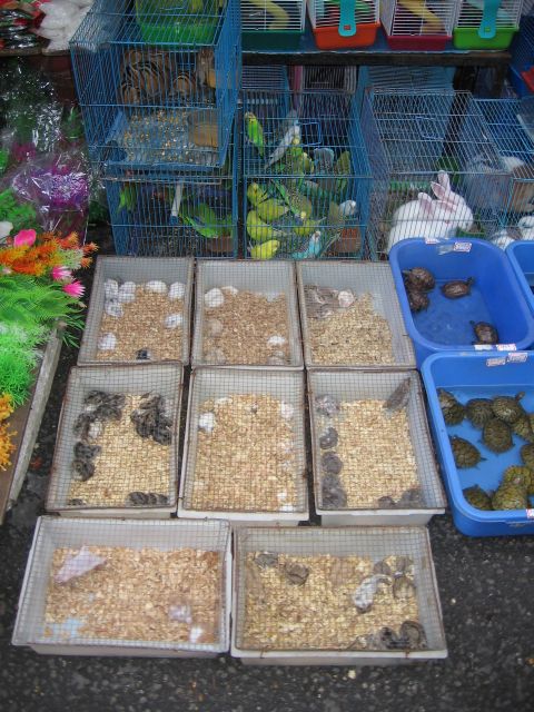 Sitten ajauduttiin elävien puolelle. Tarjolla oli mm. eläviä kilpikonnia, sammakoita ja käärmeitä. Onneksi ei nisäkkäitä näkynyt. Liekö oikealla Pekingin ankan aineksia..