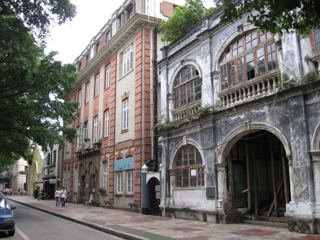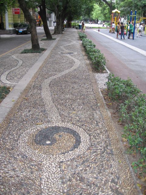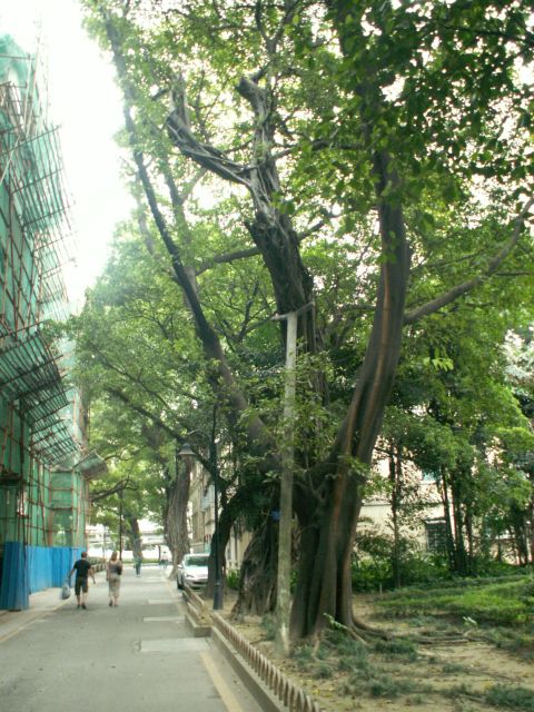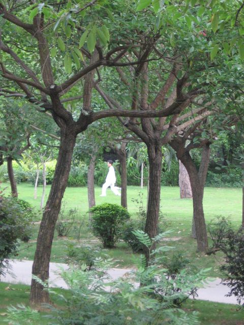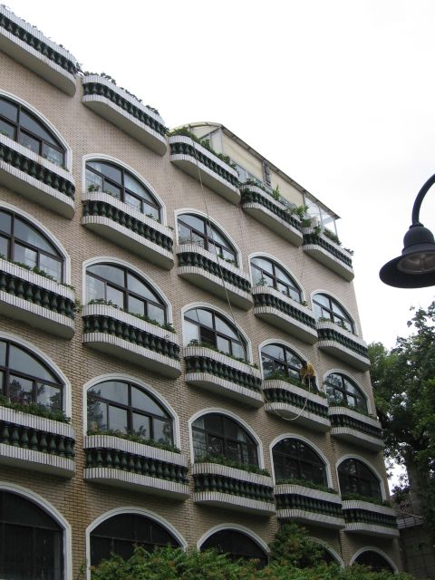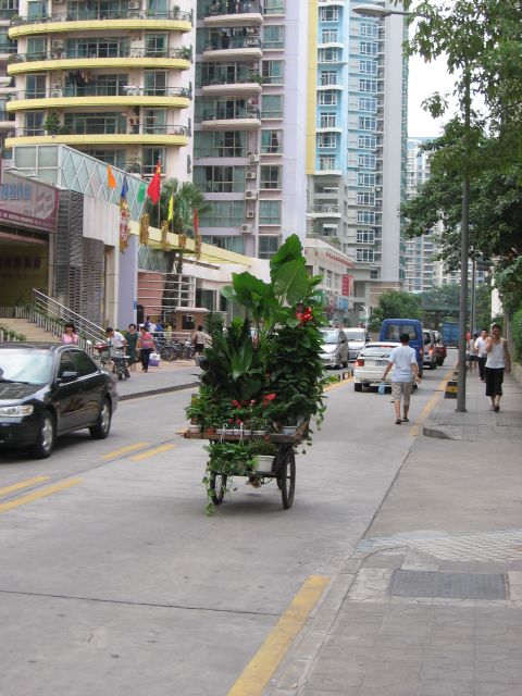 Ensin suunnistettiin Shamian-saarelle, joka ei itse asiassa enää ole saari. Sinne ovat aikanaan länsimaalaiset rakentaneet asumuksiaan ja suurlähetystöjä. Siistiä aluetta. Oikealla taidonnäyte kukkien kastelusta.