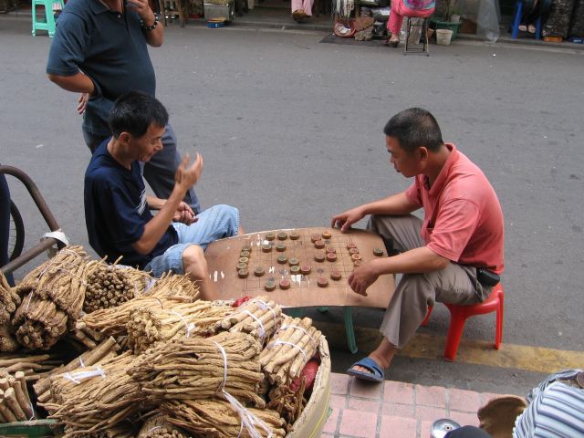 Matka jatkui kohti Qingping Markettia, jossa voi nähdä, mitä kaikkea kantonilaiset syövät. Myynnin välillä näemmä ehti pelata erän kiinalaista shakkiakin.