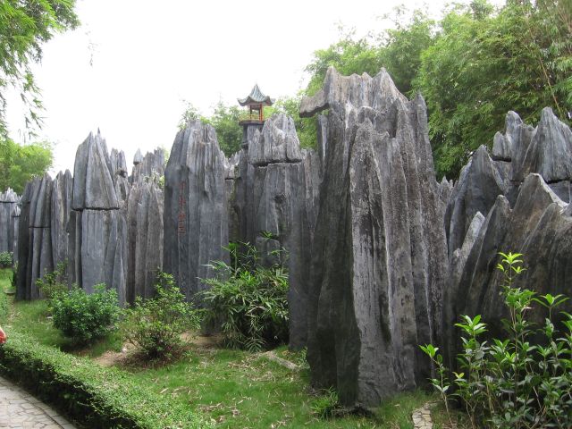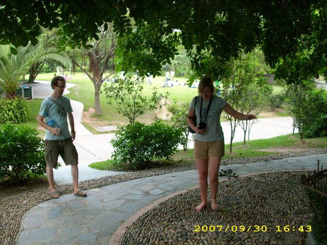 Saarella oli puisto, jossa kiinalaiseen tapaan taas kivipolkuja sekä erilaisia vempeleitä.