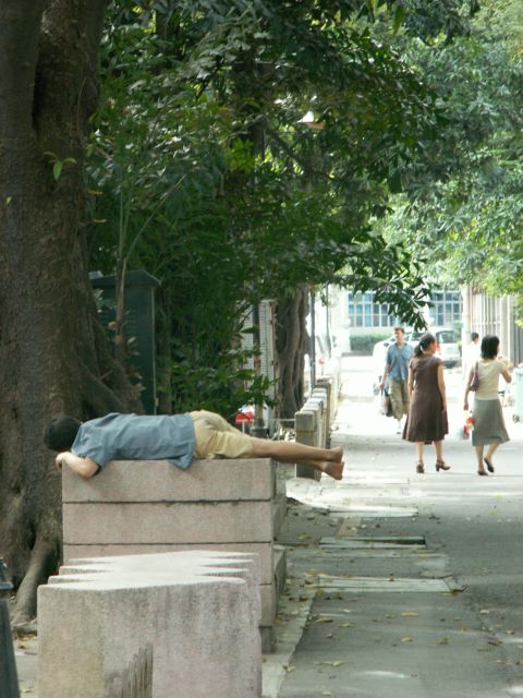 Kiinalaiset näytti kykenevän nukkumaan missä vain. Kuvat: P. Kaartinen.