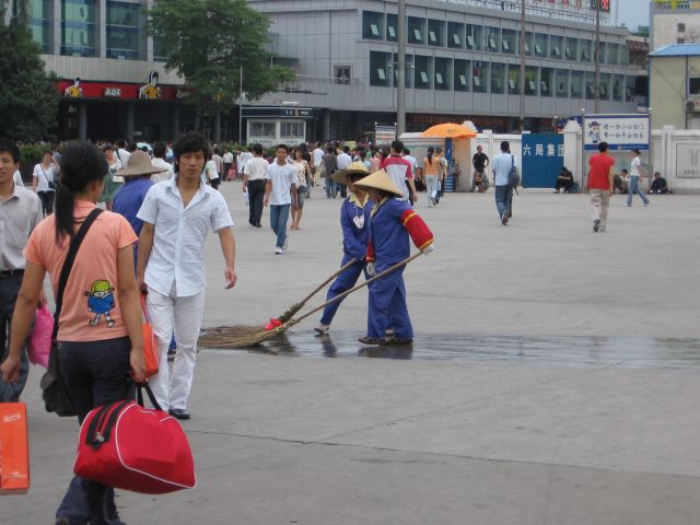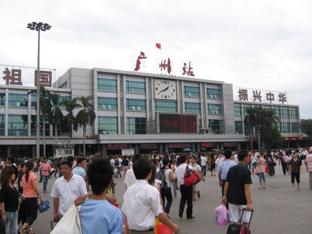 Kolmantena päivänä matkustettiin Guangzhoun eli Kantoniin junalla. Guangzhoun asema oli iso ja väkeä paikallisten loman takia paljon.