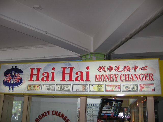 Rahanvaihtopiste satamassa. Sataman vesi ei ollut kovin houkuttelevan näköistä.