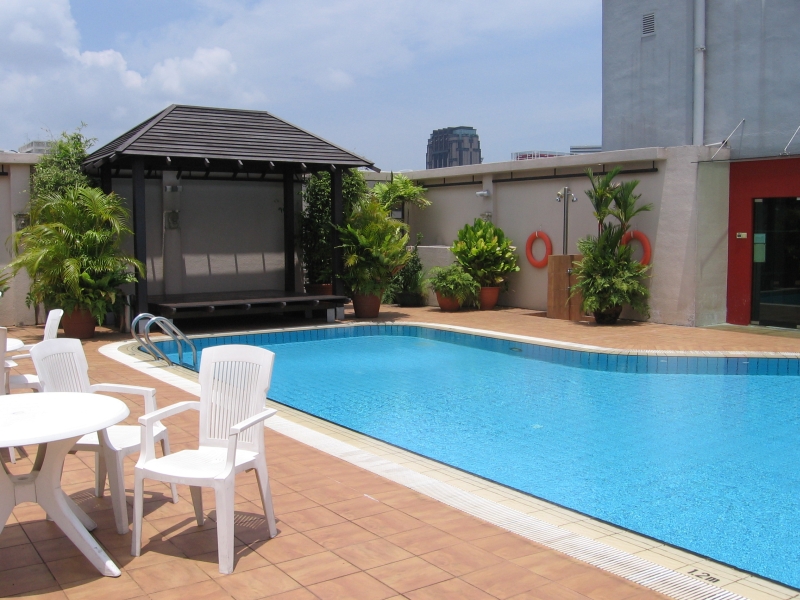 Hotelli oli Hotel Bayview, hyvä paikka. Katolla oli uima-allas ja sauna.