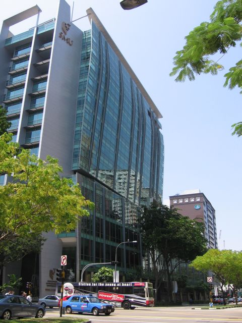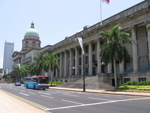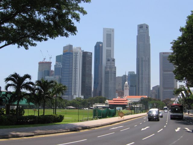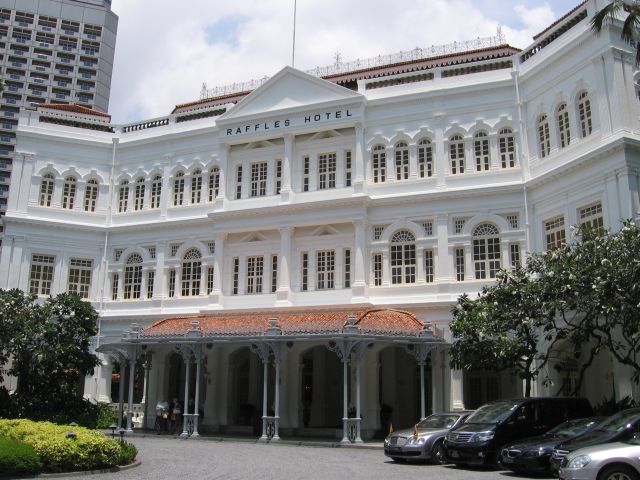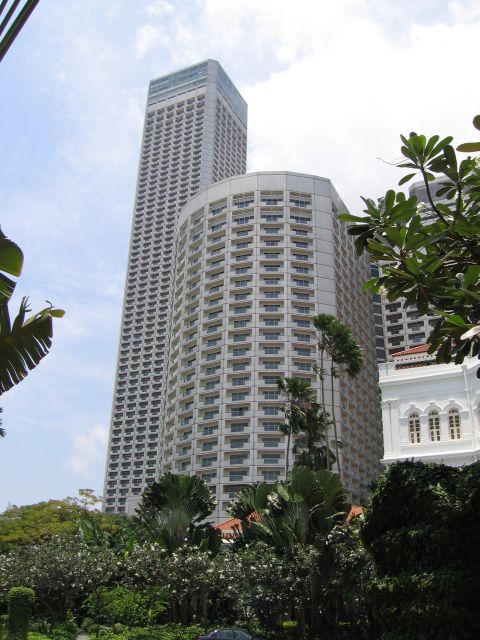 Konffahotellissa riitti kerroksia. Vieressä oli legendaarinen Raffles-hotelli.