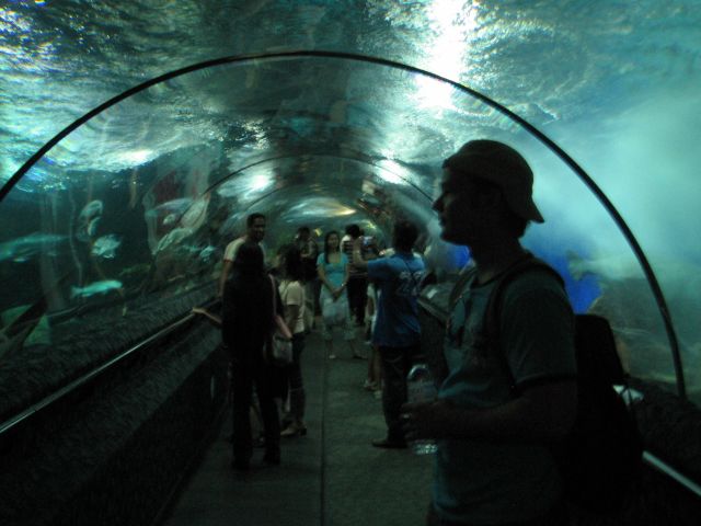 Poikettiin merenalaisessa maailmassa, jossa pääsi putken sisällä kulkemaan kalojen keskellä ja ihmettelemään kaikki omalaatuisia mereneläviä..