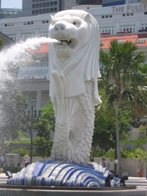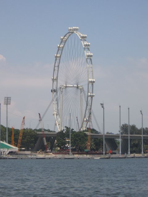 Merlion ja valtava rakenteilla oleva maailmanpyörä.