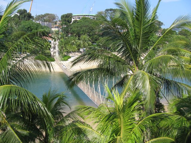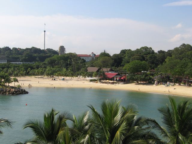 Sentosa on saari Singaporen edustalla. Sinne pääsee myös maitse siltaa pitkin, mutta me valittiin ilmatie.