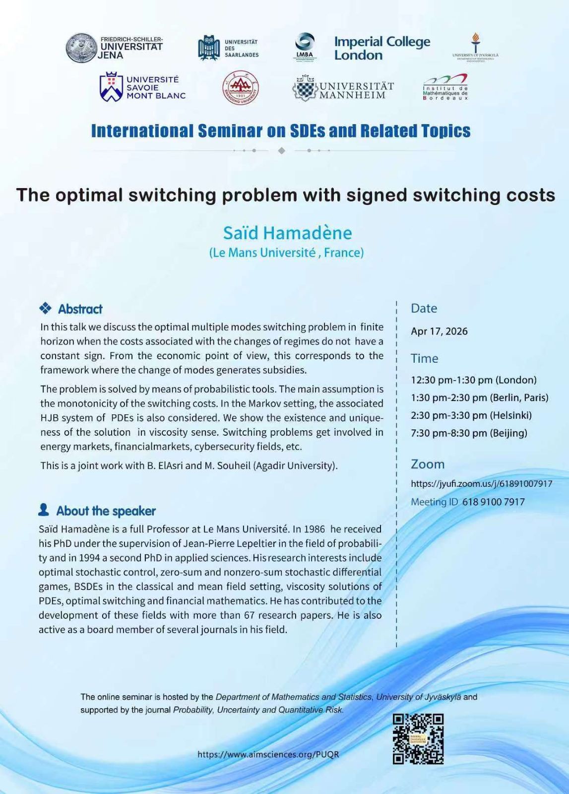 - Stefan Ankirchner (FSU Jena, Germany)