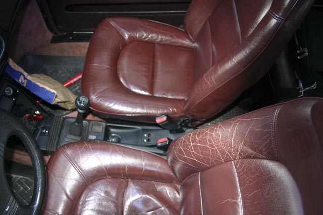 Tässä kuvassa näkee mitä Nahkiss saa aikaan. Apukuskin penkki on käsitelty ja kuskin penkki ei.