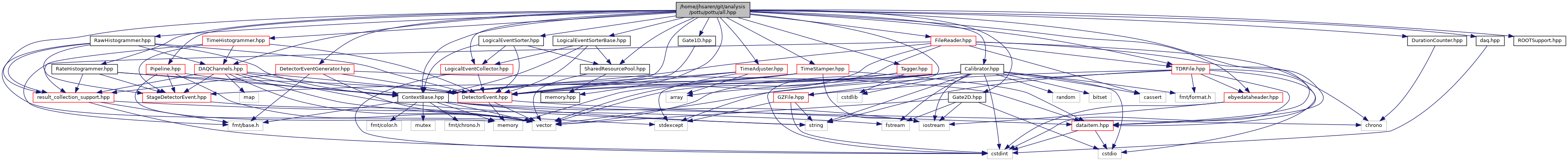 #include "Calibrator.hpp"#include "ContextBase.hpp"#include "DAQChannels.hpp"#include "dataitem.hpp"#include "DetectorEventGenerator.hpp"#include "DetectorEvent.hpp"#include "DurationCounter.hpp"#include "ebyedataheader.hpp"#include "FileReader.hpp"#include "Gate1D.hpp"#include "Gate2D.hpp"#include "GZFile.hpp"#include "RateHistogrammer.hpp"#include "RawHistogrammer.hpp"#include "Tagger.hpp"#include "TDRFile.hpp"#include "TimeAdjuster.hpp"#include "TimeHistogrammer.hpp"#include "TimeStamper.hpp"#include "memory.hpp"#include "LogicalEventCollector.hpp"#include "LogicalEventSorter.hpp"#include "LogicalEventSorterBase.hpp"#include "SharedResourcePool.hpp"#include "daq.hpp"#include "ROOTSupport.hpp"#include "Pipeline.hpp"#include "result_collection_support.hpp"