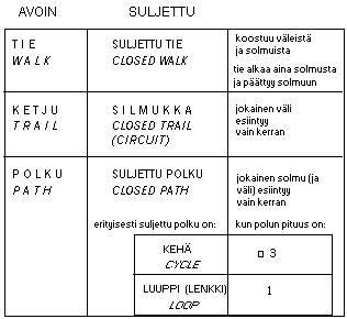 Oheinen kaavio selventää käsitteiden tie, ketju ja polku keskinäisiä suhteita: