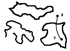 Avoin ja suljettu (ylh.) Jordanin käyrä, sekä Jordanin käyrälauseen kuvitus