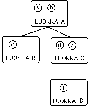 Esimerkki luokkahierarkiasta (yksittäisperiyttäminen,