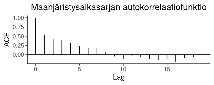 Aineiston kuvaaja ja autokorrelaatiofunktio ovat: